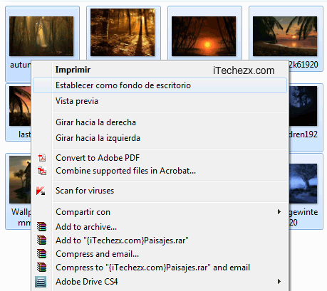 Y da clic en Establecer como fondo de escritorio. Ahora solo hay que ajustar las propiedades del slideshow.